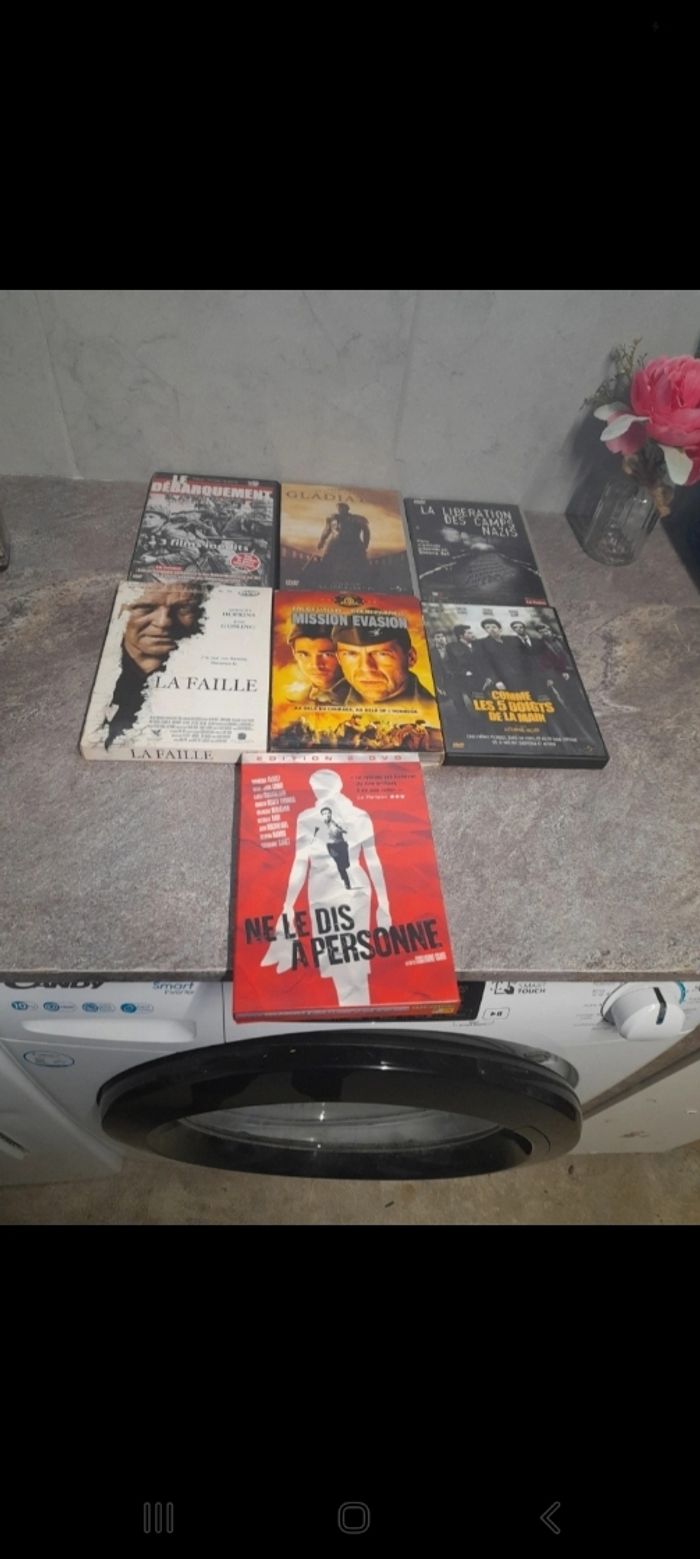 Lot de 8 dvd comprenant Le débarquement du 6 juin 1944 Gladiator avec russell croyez La libération des camps nazis (jaquette abîmé) Comme les 5 doigts de la main avec Patrick bruel Mission évasion avec Bruce Willis Ne le dis à personne (2 dvd) avec François cluzet La faille avec Anthony hopkins Certains dvd ont des micros rayures mais fonctionne très bien.