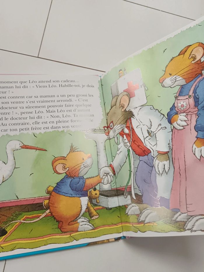 Livre enfant Léo le souriceau veut un petit frère, parfait pour un enfant qui va bientôt être grand frère. Très bon état