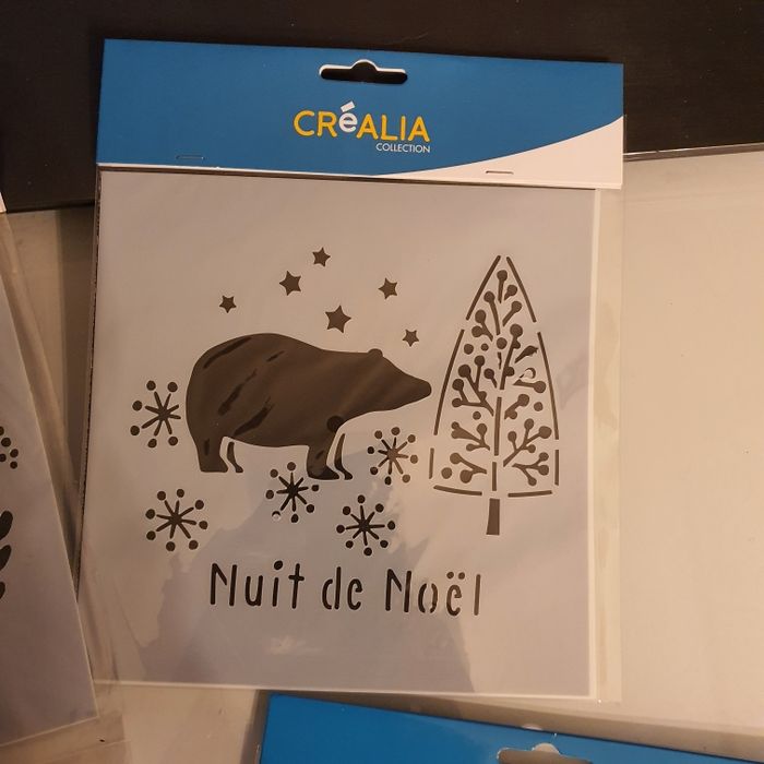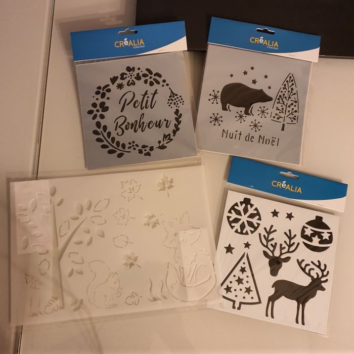 Lot 4 pochoirs différents thèmes Pochoirs Créallia 17x17 cm Pochoir foret 29x20 cm