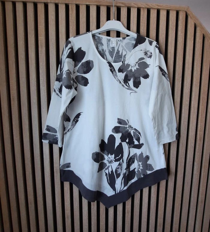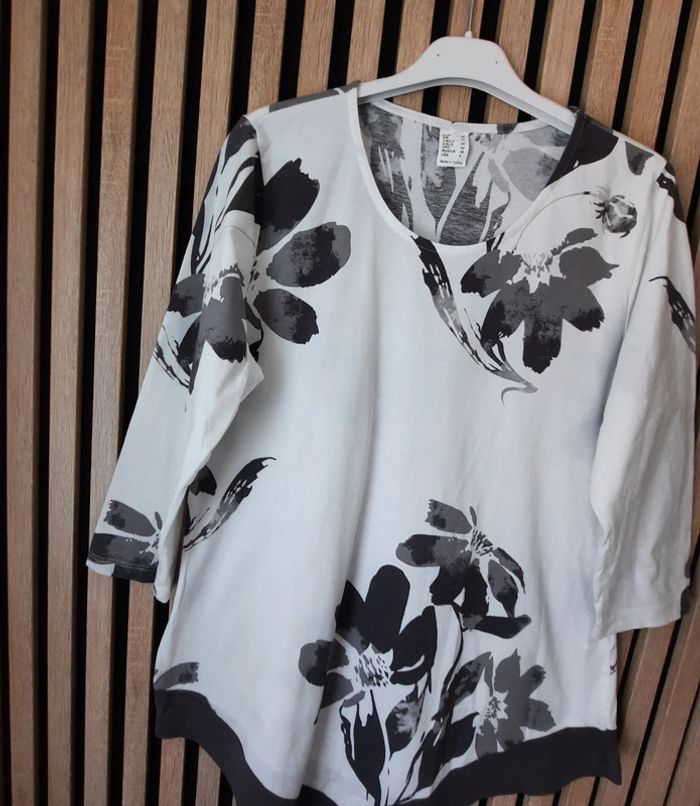 Tunique haut  gris et blanc fleuri T 38 - photo numéro 2