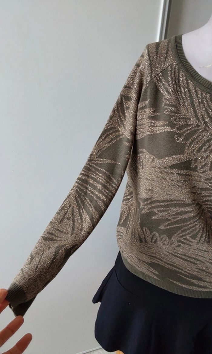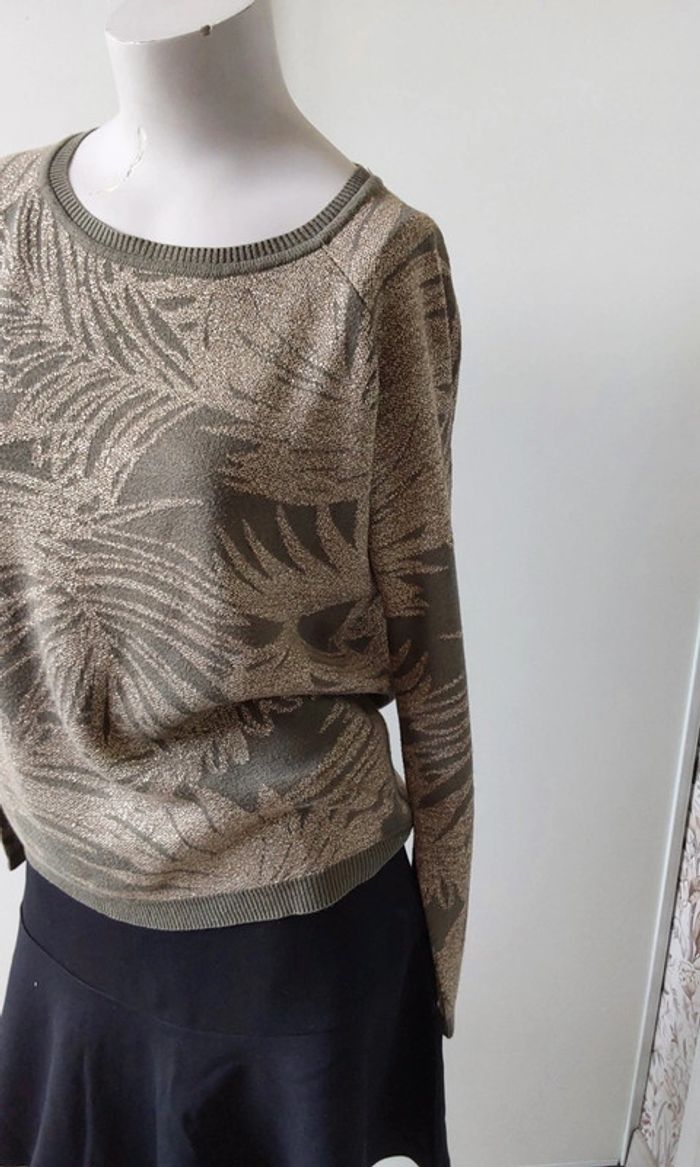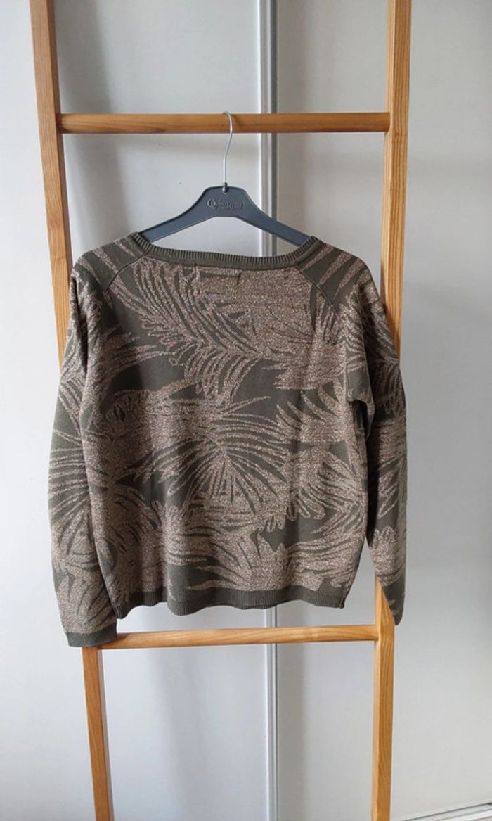 Pull vert kaki feuillage doré  Promod T 38 - photo numéro 3