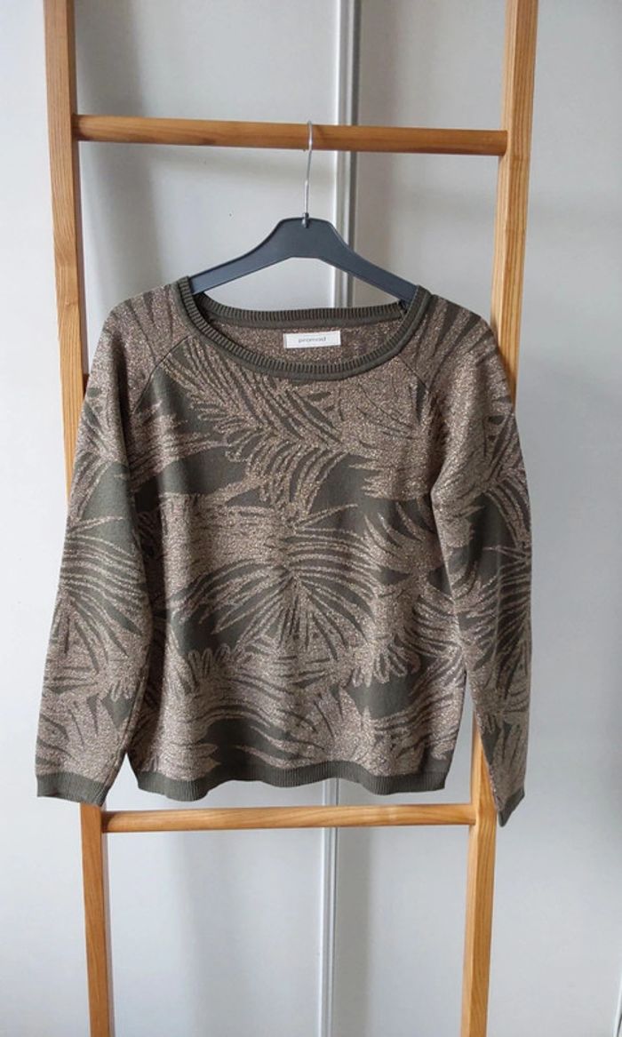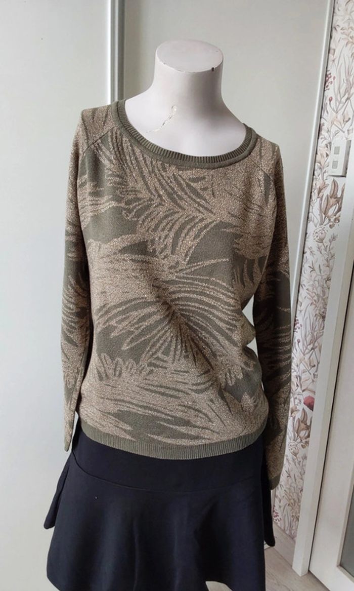 Pull vert kaki feuillage doré  Promod T 38 - photo numéro 1