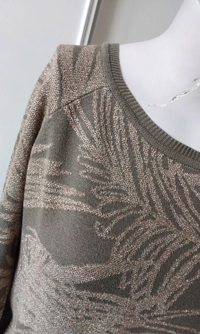Pull vert kaki feuillage doré  Promod T 38 - photo numéro 7
