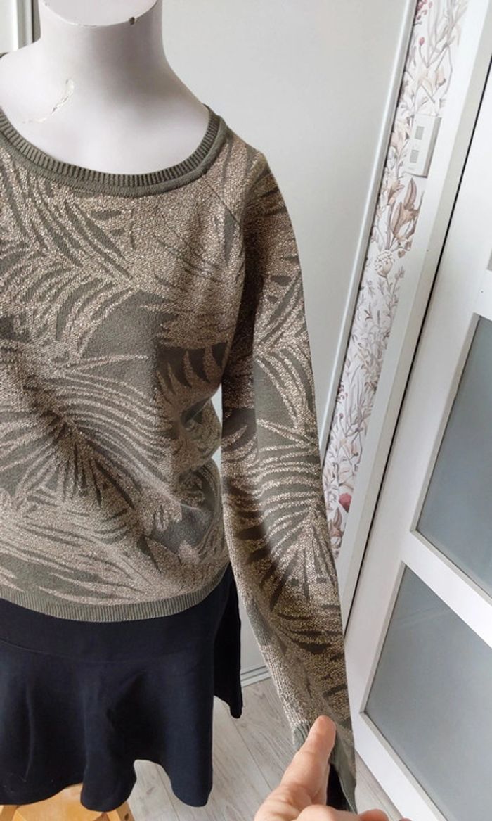 Pull vert kaki feuillage doré  Promod T 38 - photo numéro 8