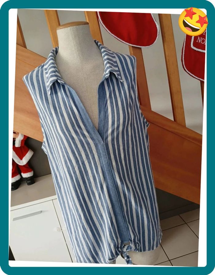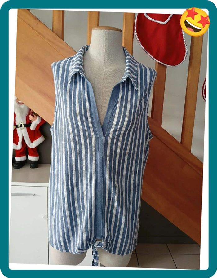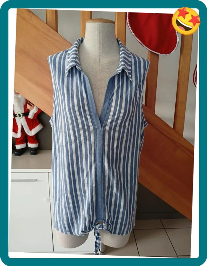 📌Compte Pro:  Si vous voulez un lot contacter moi😉⤵️ ♦️-10% pour 2 Articles ♦️-20% dès 3 Articles 🌼Chemisier d'été à rayures, sans manches, en très bon état ❤️Plusieurs Articles de la même catégorie sur mon dressing➡️ #mayevêtemntfemme 📥 Envoie Rapide et Soigné des colis, Tous les jours, Sous 24/48h maximum🚀 🚚 Envoie sur tous les points Relais ⚠️Vêtements sans défaut particulier 🚭 Maison non-fumeur 🎁 Cadeaux offert si possible