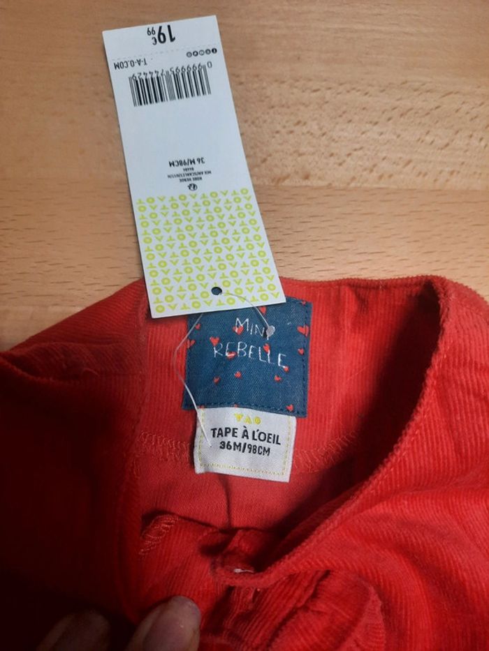 Robe rouge velour côtelé Tape a l'œil Neuve 36 mois