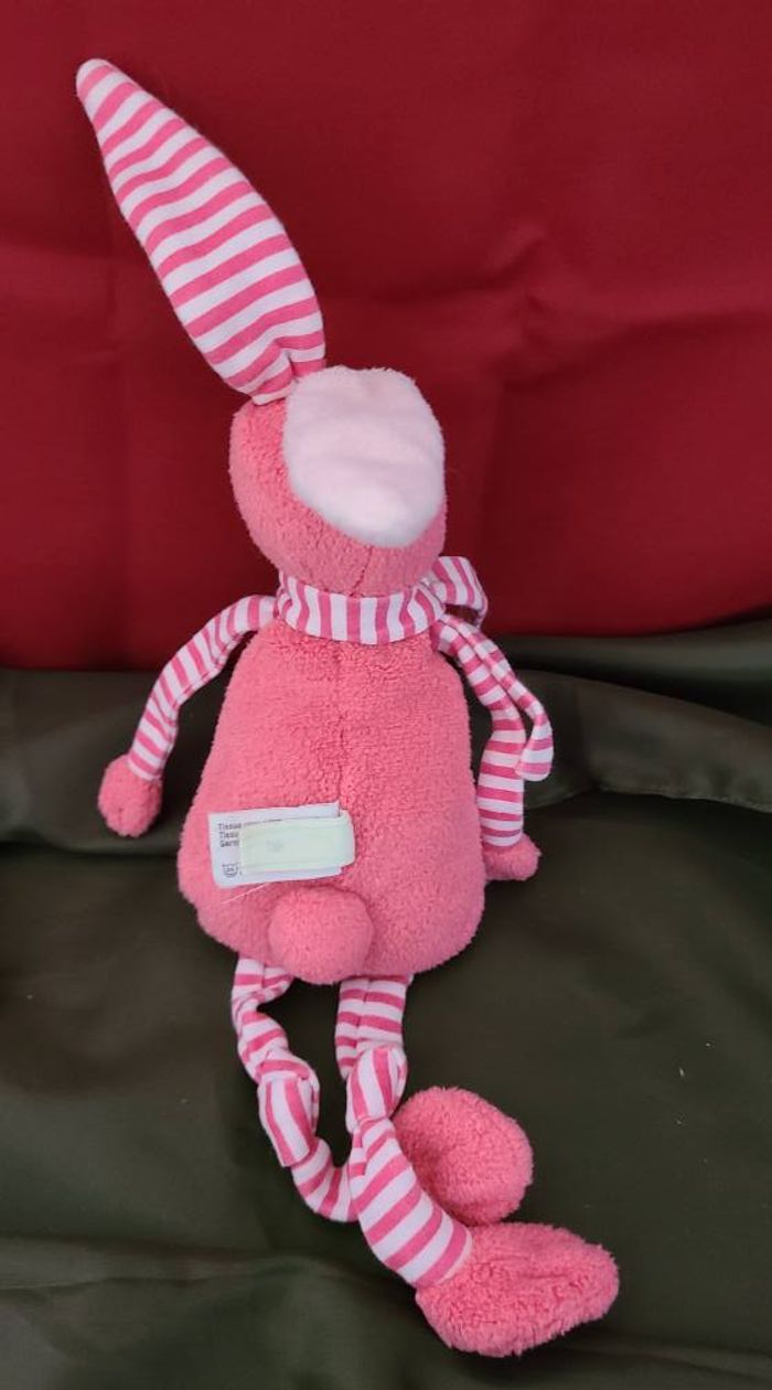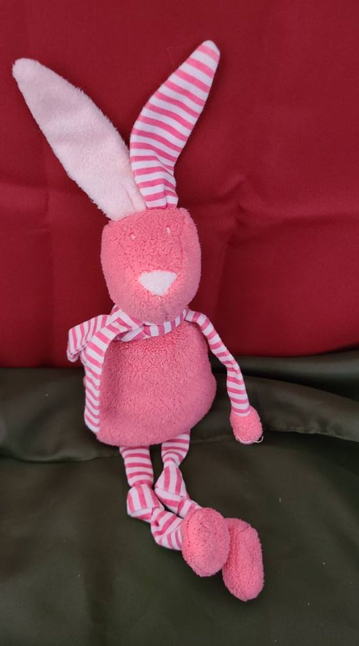 Peluche pantin lapin BOUT'CHOU longues pattes roses rayures - photo numéro 1