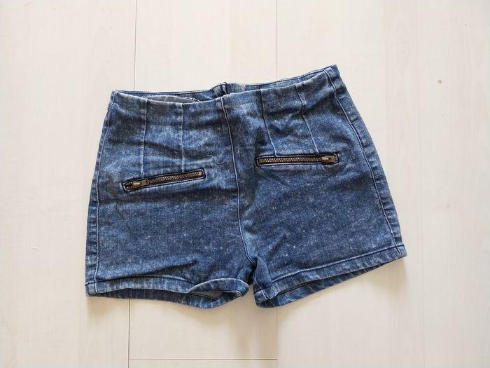 Bonjour, Je vends ce short en jean en très bon état. Il est en taille 34 mais je ne sais plus la marque, il n'y a plus d'étiquette. Il est assez court.