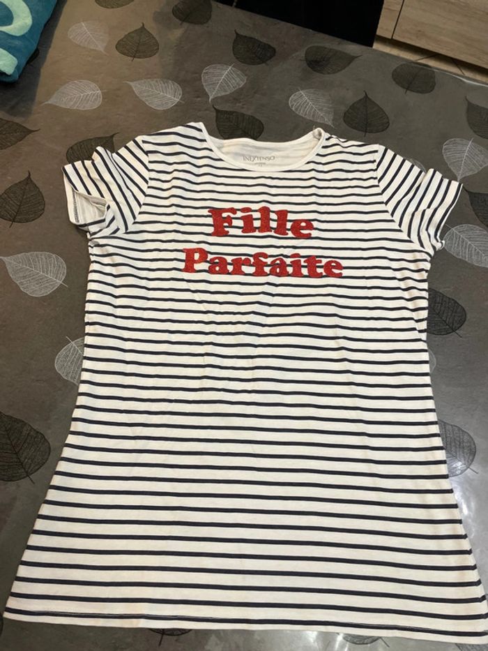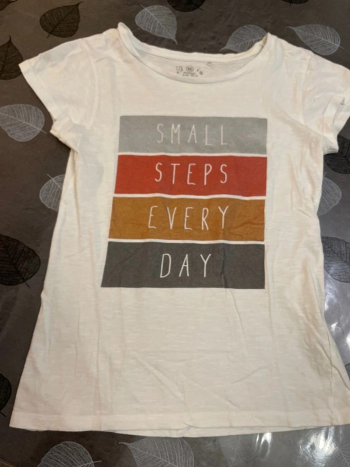 Lot 3 teeshirts 1 blanc à rayures bleues « fille parfaite » In Extenso 1 gris Camps 1 blanc Super U « small steps every Day » Taille 12ans