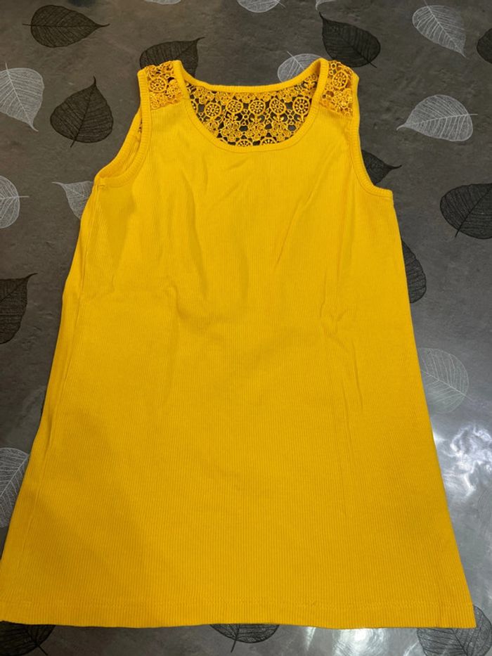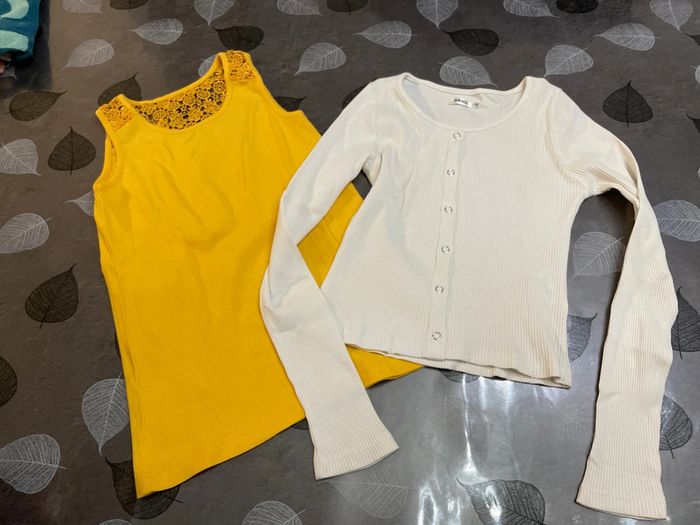 Lot 2 teeshirts : 1 blanc manches longues 1 jaune orange sans manches avec broderie au niveau des épaules Marque Gemo Taille 12 ans