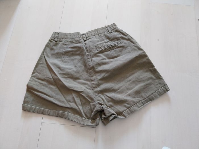 Bonjour, Je vends ce short en coton pour femme. Il est en très bon état, de couleur vert kaki. Il est en taille 36 et je ne sais pas la marque car pas d'étiquette de marque.