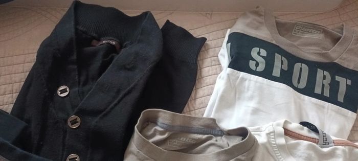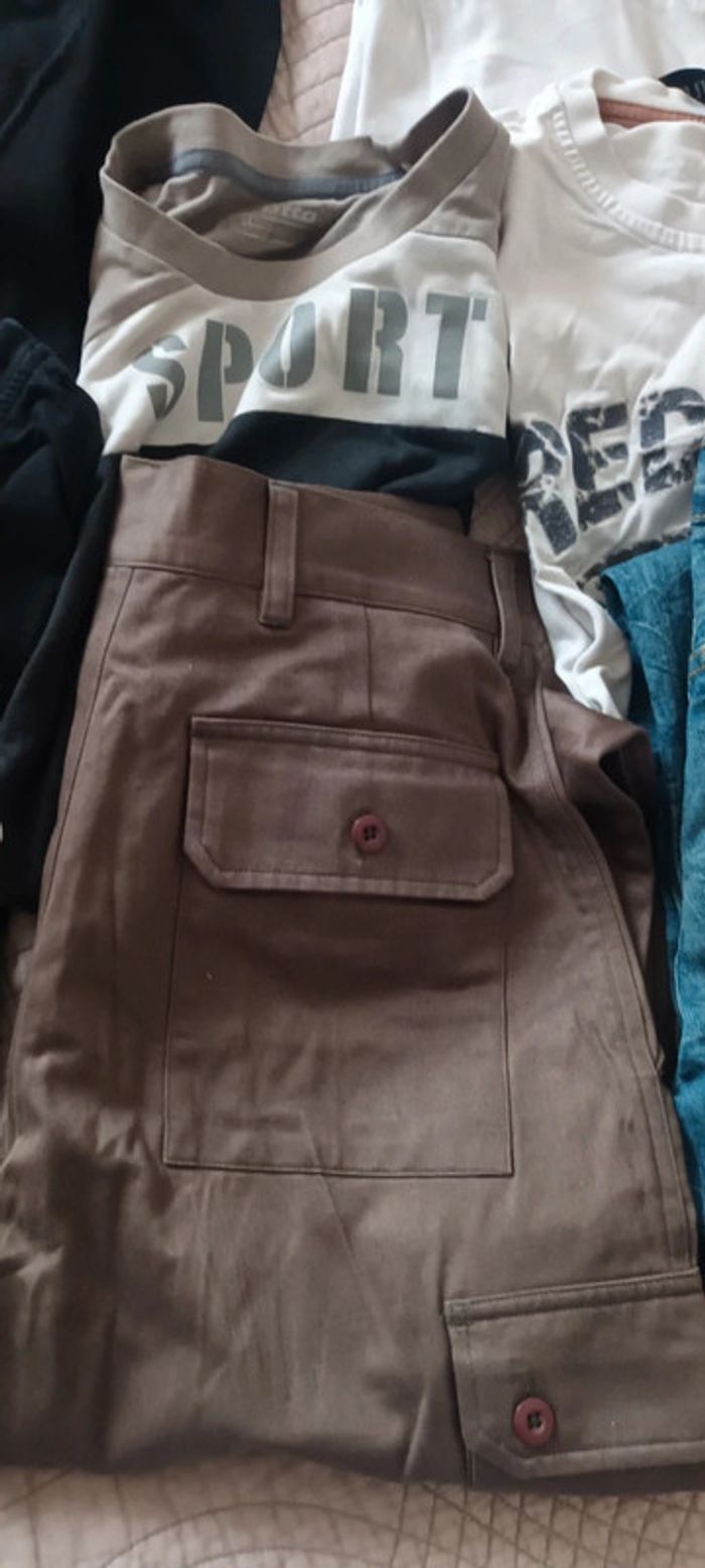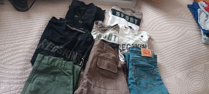 Lot qui contient , 2 pantalons neuf, 1 pull Brice et 4 tee shirt manche longue redskins que je donne en cadeau car tâche 2 sur4 attention le jean Lévis est déjà vendu