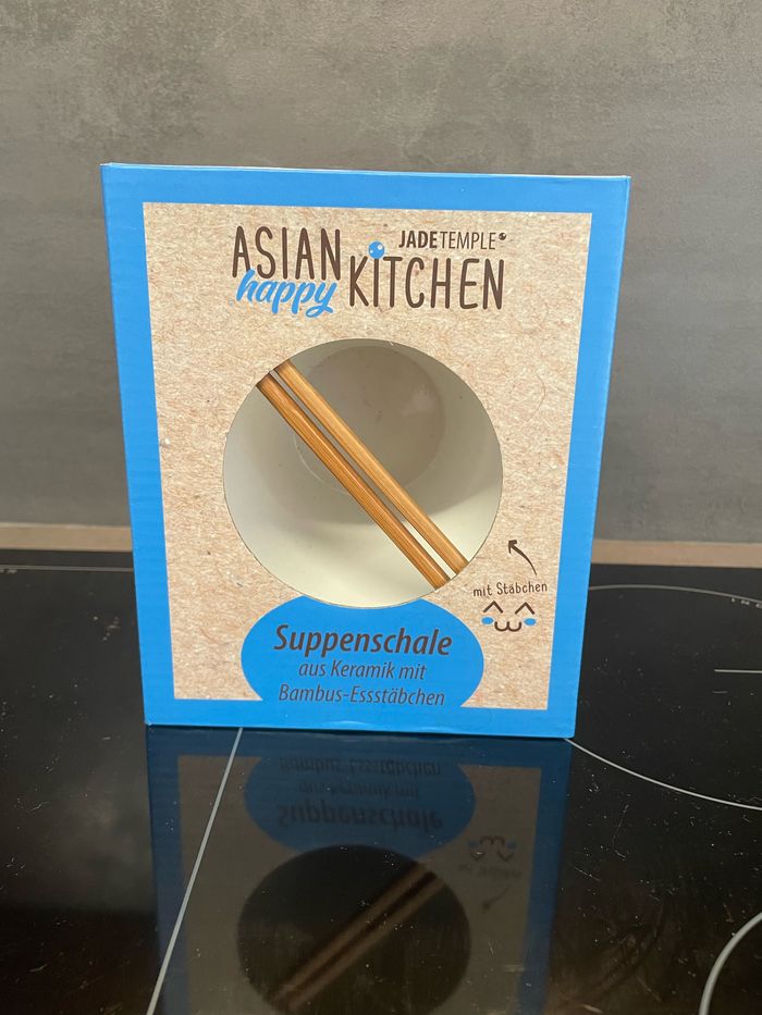 Bol à soupe en céramique de style asiatique avec baguettes en bambou 100% Neuf Idéal pour à soupe et à pâtes Capacité 500ml Passe au lave-vaisselle