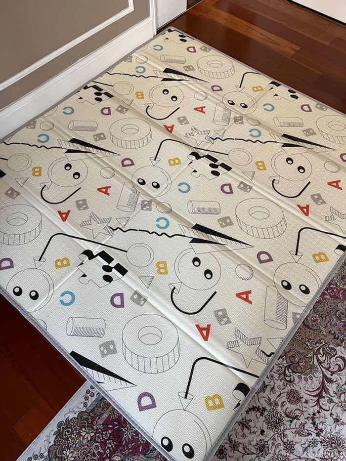 Tapis de jeu, en mousse pour bébé, pliable et réversible Taille 180x200x1,5cm Jamais utilisé Dans son emballage d’origine 115 U11L