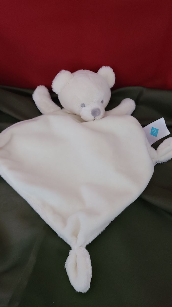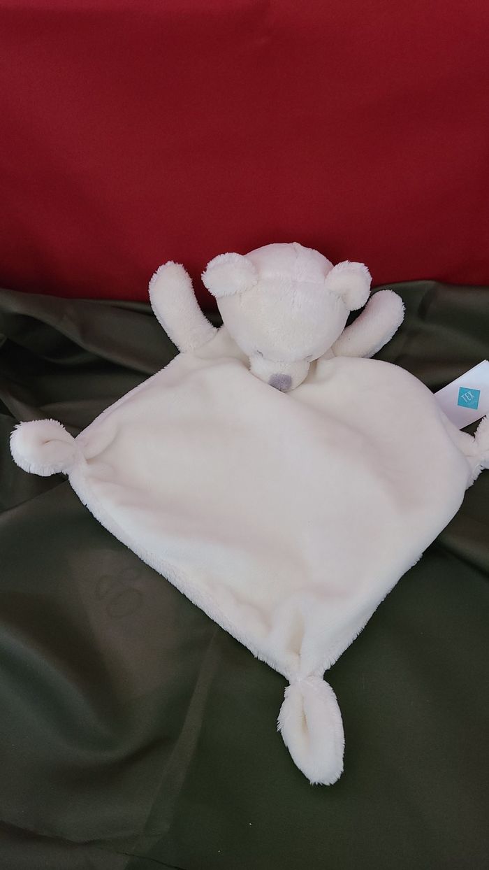 Doudou plat ours TEX BABY losange blanc créme noeuds - photo numéro 1