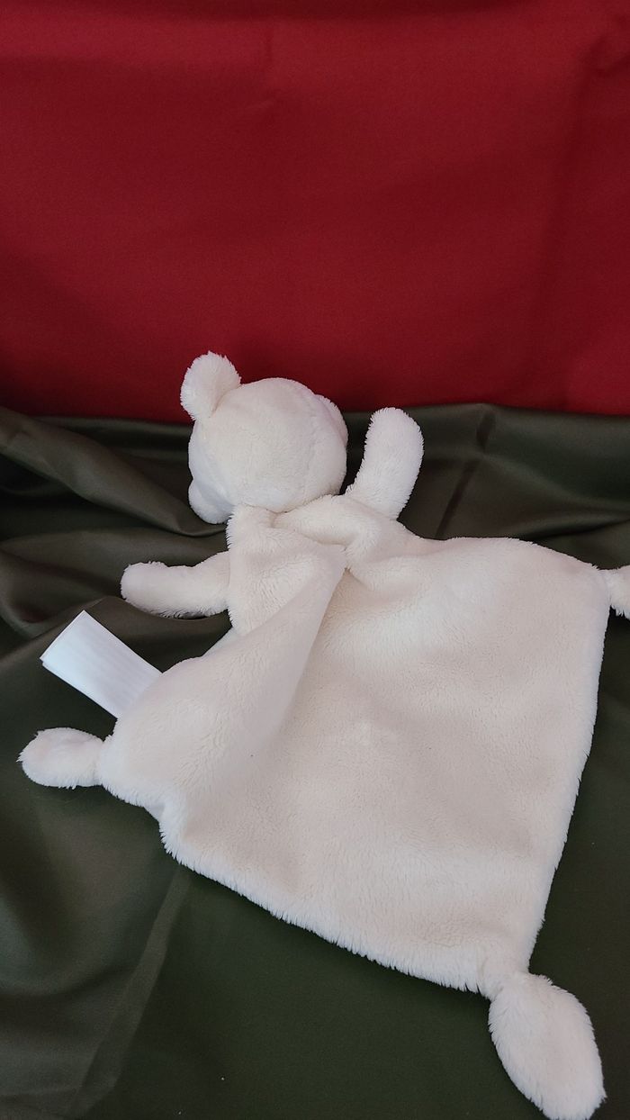 Doudou plat ours TEX BABY losange blanc créme noeuds - photo numéro 3