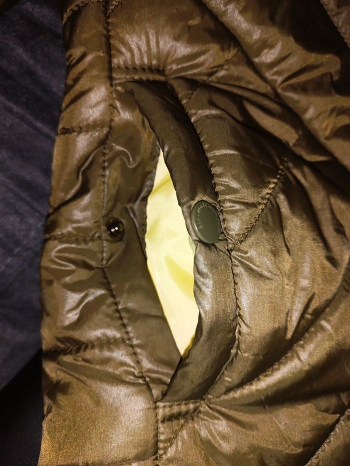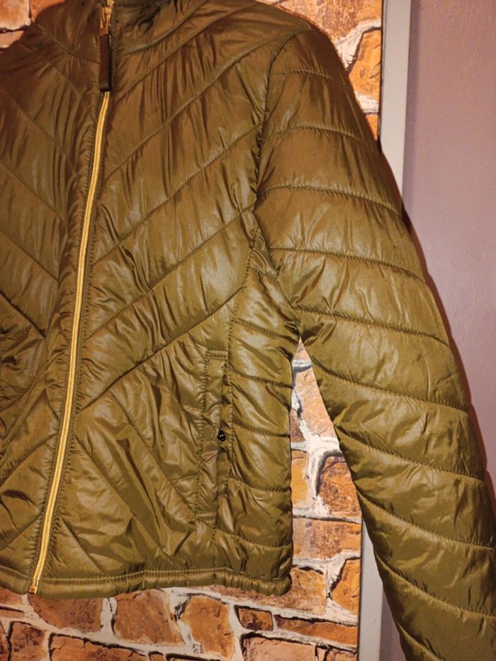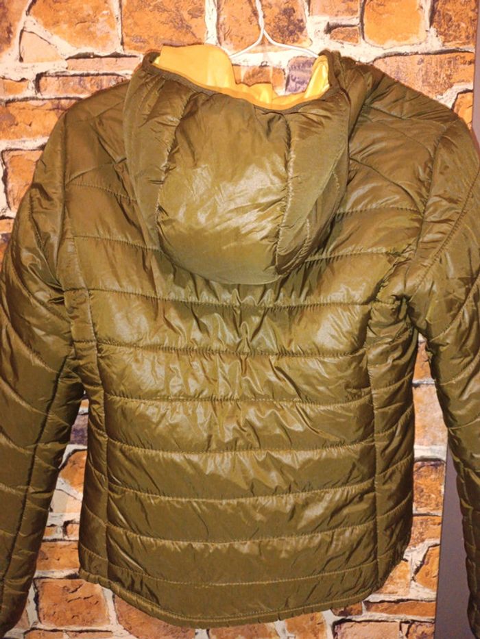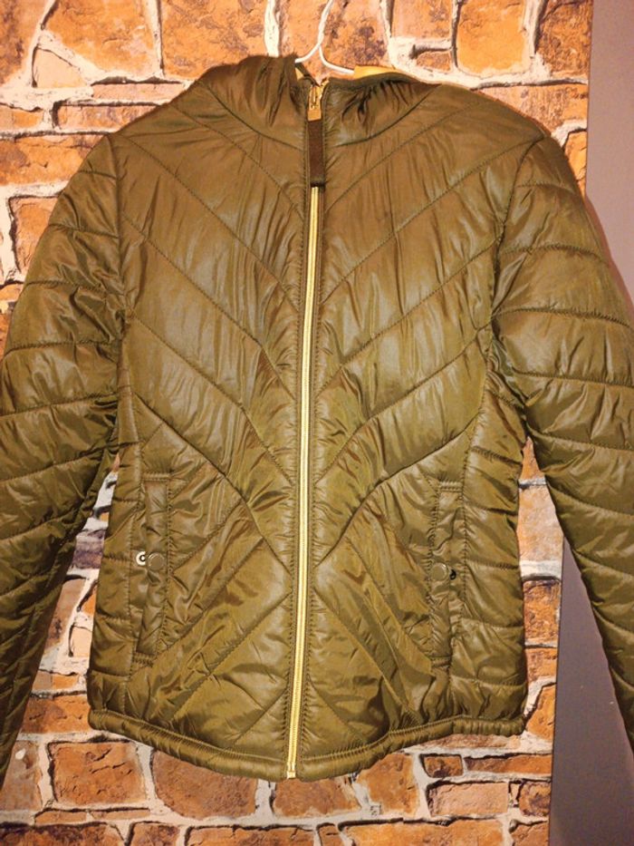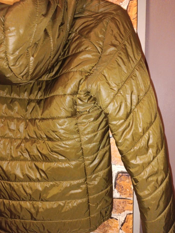 Veste doudoune vert olive à capuche pour femme, en très bon état, taille S . b