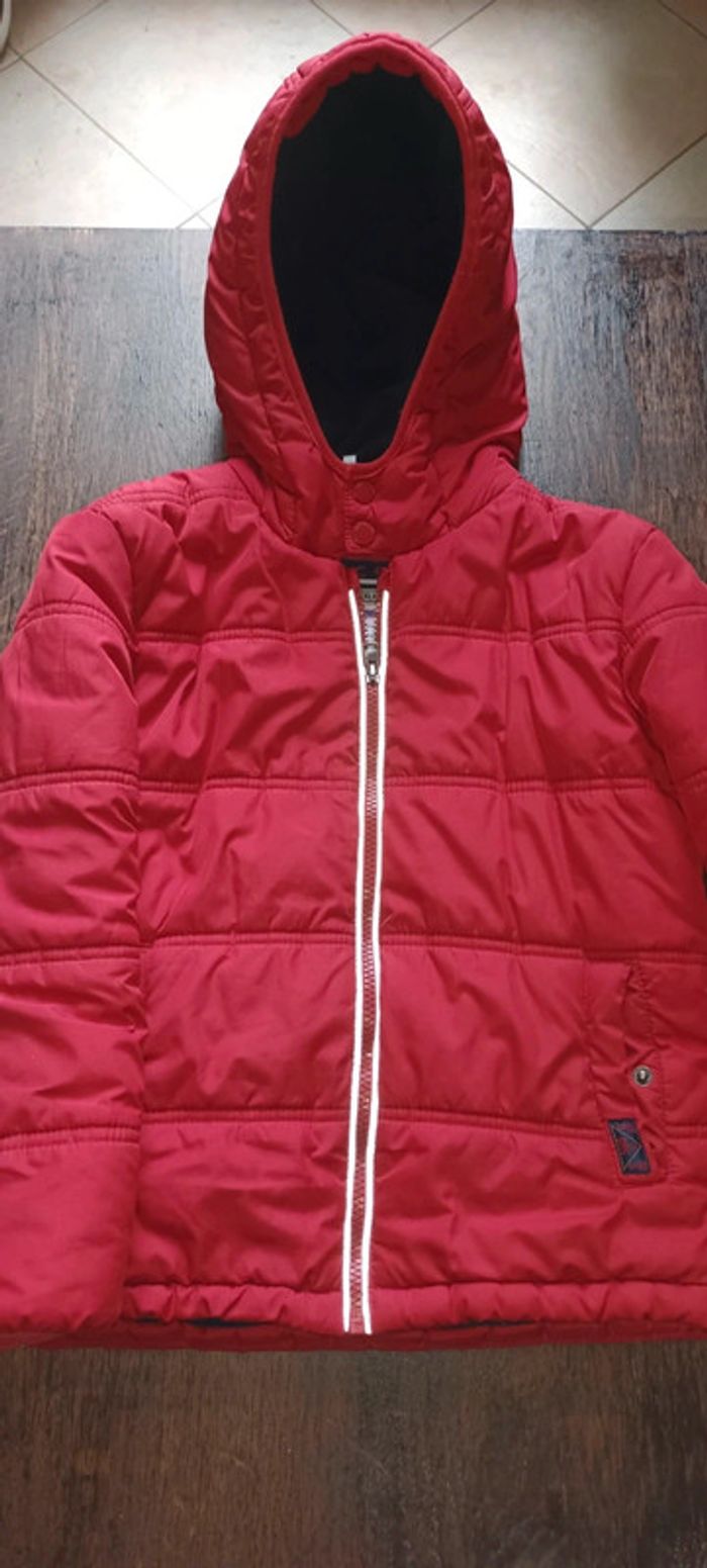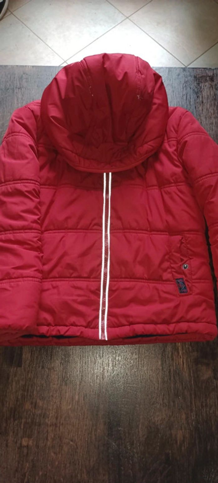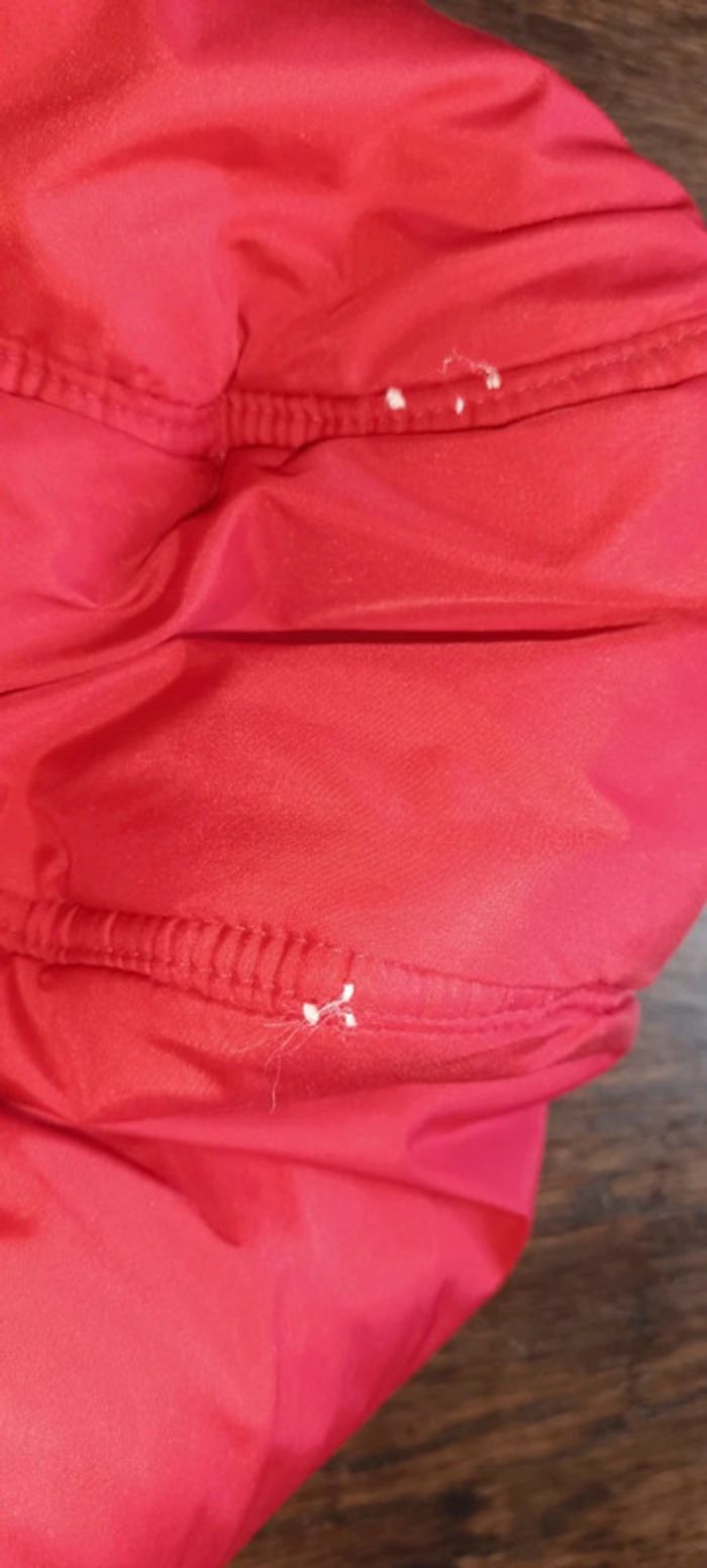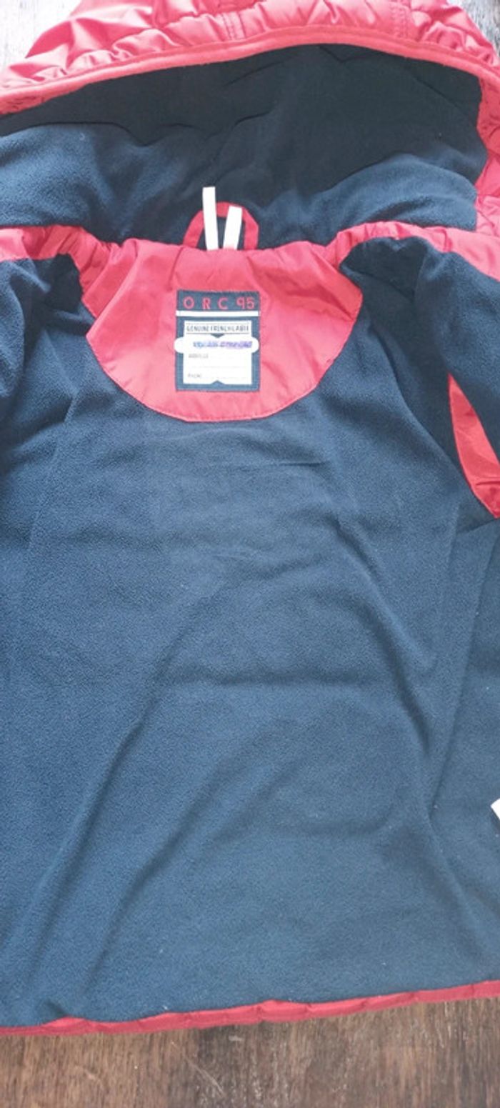 Doudoune rouge orchestra 8 ans A capuche qui a un léger accro ( voir photo ) Sur le bras toutes petites tâches ( voir photo )
