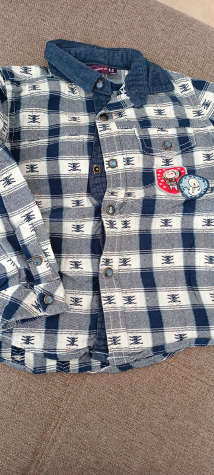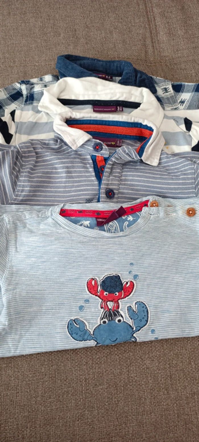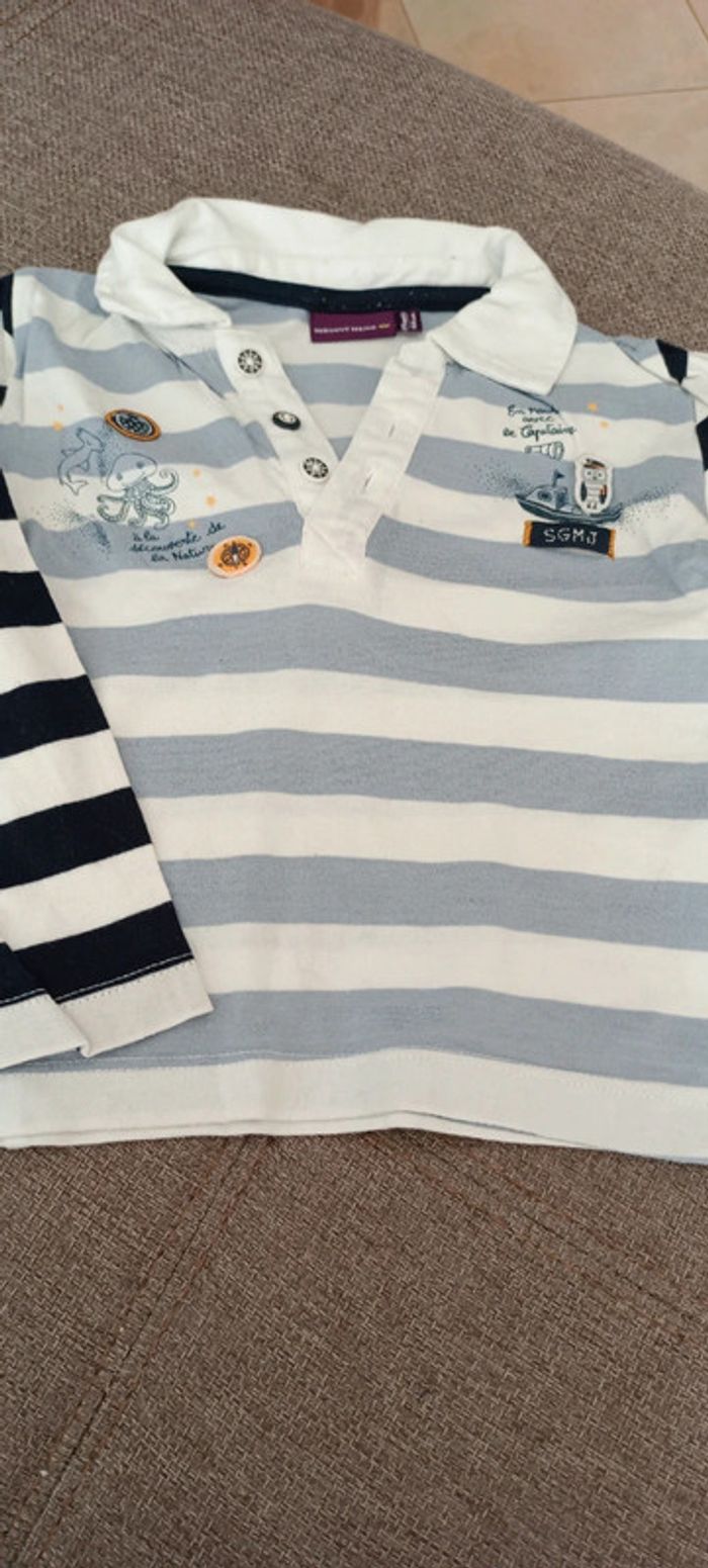 Je vends ce lot de 4 hauts sergent major Vous avez 2 polos , un haut et une chemise d'hiver Tous en bon état Le haut a un tâche sur l'épaule lié aux boutons qui ont déteint ( voir photo) Le polo (3eme photo individuel) est taille en 24 mois. Le reste c'est taille 2 ans La chemise s'attache avec pressions sur le devant