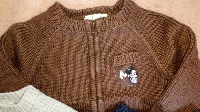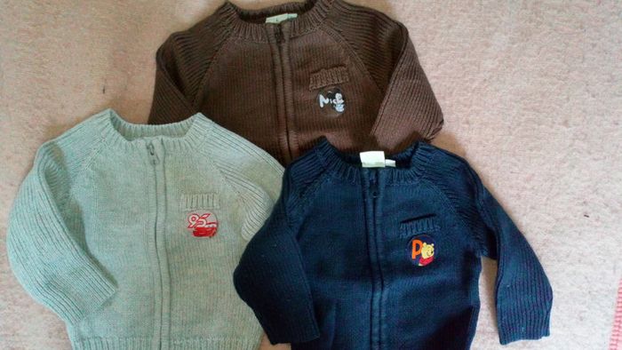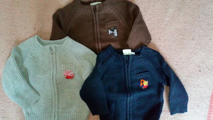 3 pulls zippés Disney baby Mickey , Winnie l'ourson et cars Bleu marine, gris et marron En très bon état 3 mois
