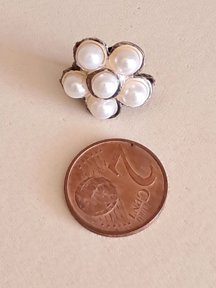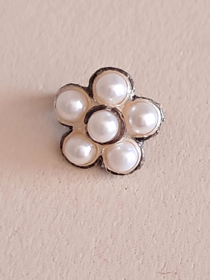 Adorable petite broche fleur avec perles fantaisie. Diamètre 1,5 cm environ