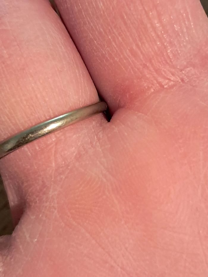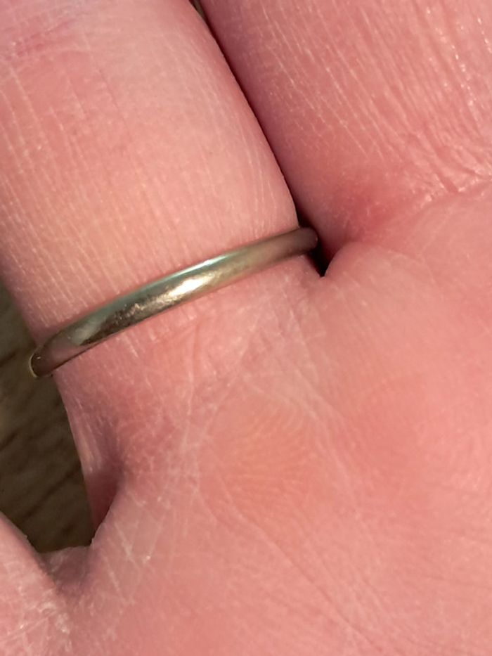 Plateau en bon état. Annea en état moyen: dorure tres éffacée et deux marques comme si l anneau avait été presque coupé. Pas visible porté puisque marques situées entre les doigts. Taille 56.