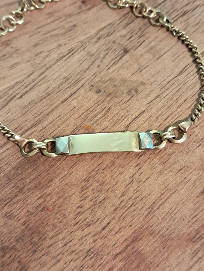 Ancien. Vintage. Vers 1930.poinçon. plaque non gravée. Taille d origine 12 cm. Allongée avec anneaux fantaisie dorés jusqu à 17 cm