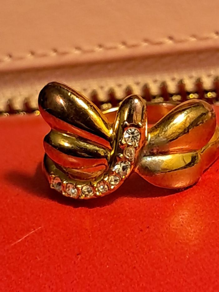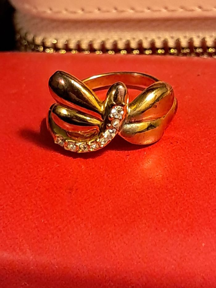 Fantaisie. Métal doré et strass. Réglable autour de la taille 54. Dorure un peu effacée le long du corps de la libellule a droite sur les photos.