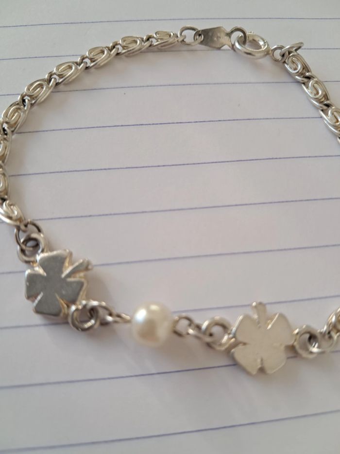 Bracelet trefles a 4 feuilles et perle - photo numéro 3
