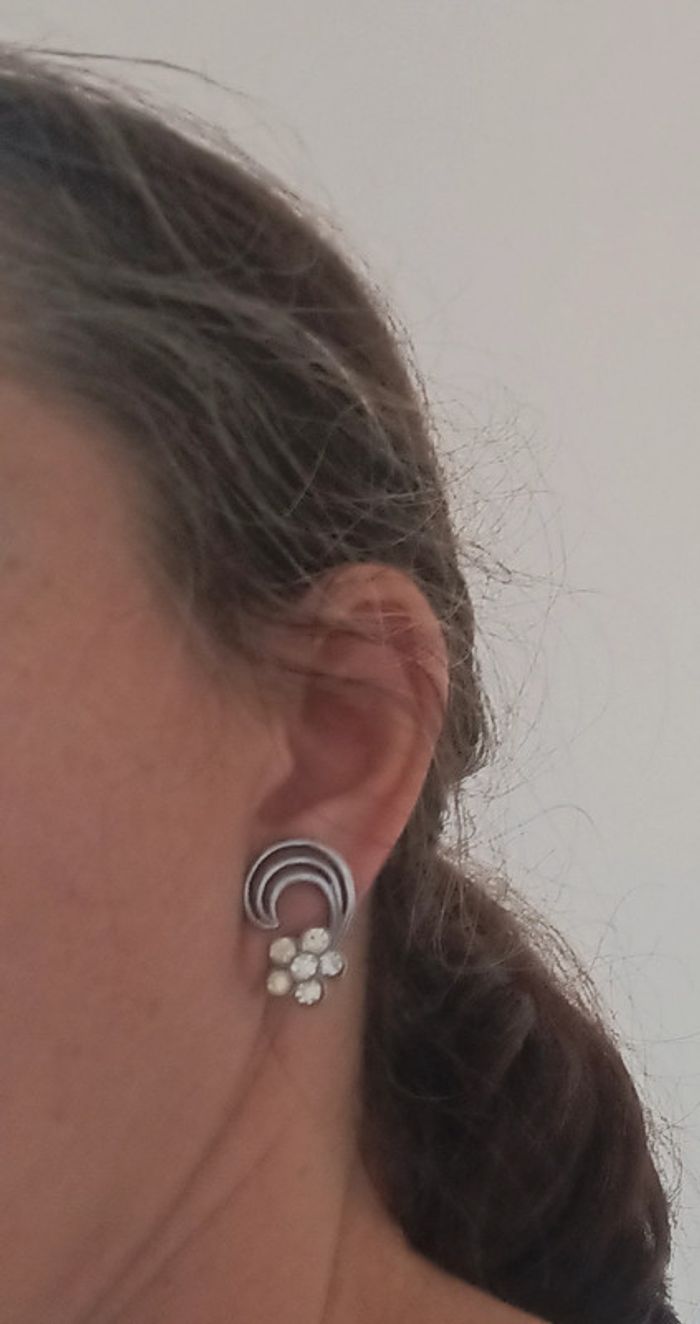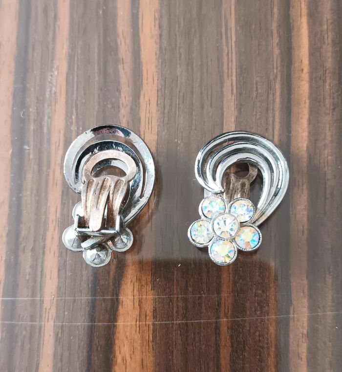 Boucles d oreilles a clip avec une petite fleur en strass fantaisie - photo numéro 3