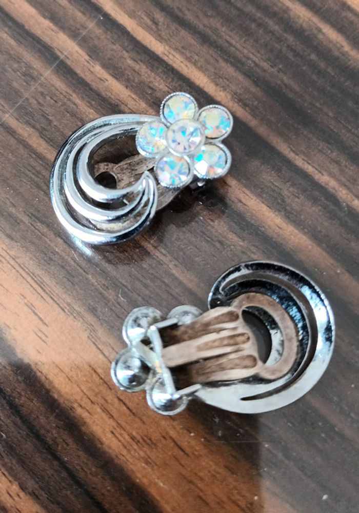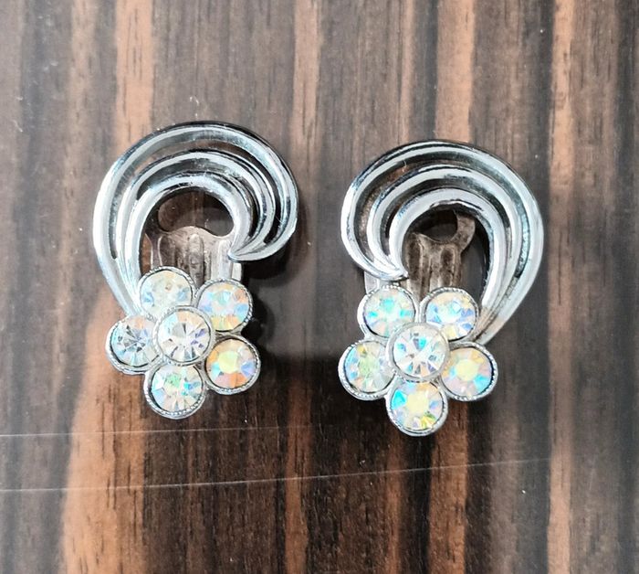 Boucles d oreilles a clip avec une petite fleur en strass fantaisie - photo numéro 1