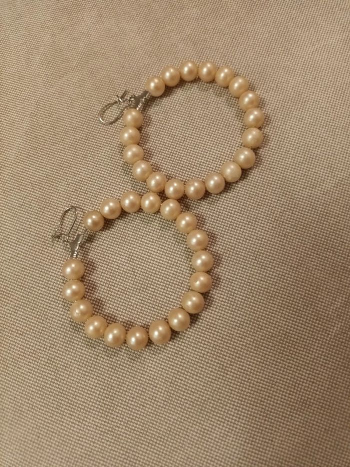 Boucles forme creoles mais attachees avec un fermoir dormeuse. Perles fantaisie vintages. Faait main. Diam 45 mm