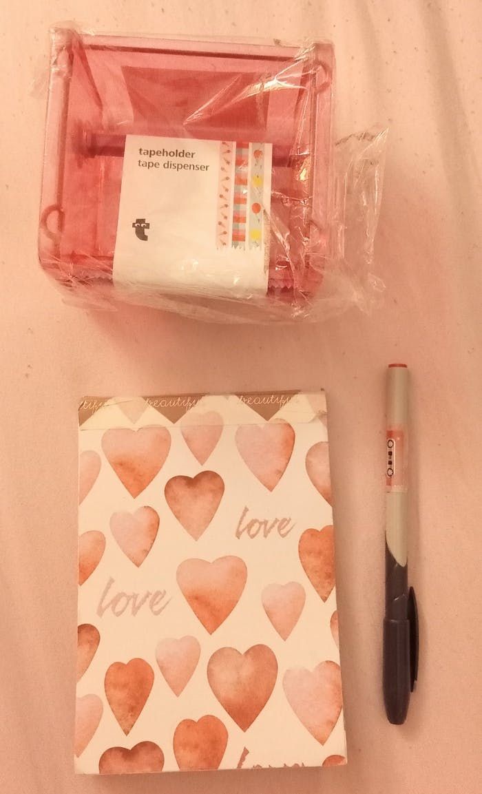 Lot papeterie rose loisirs créatifs un dérouleur de scotch et washi TApe neuf, un stylo et un petit bloc de feuilles