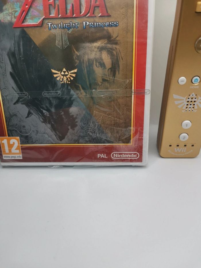 JEUX NINTENDO WII THE LEGEND OF ZELDA TWILIGHT PRINCESS JEUX NEUF ENCORE SOUS BLISTER MÊME SI IL A ÉTÉ ABÎMER AVEC LE TEMP VUE SUR PHOTO 📸 ACCOMPAGNER DE SA WIIMOT EDITION ZELDA COULEUR OR C'EST DEUX ARTICLES DE COLLECTION SERA VENDU AU PLUS OFFRANT MERCI