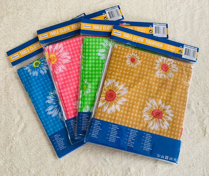 Lot 4 nappes differents Cuisine Élégance dimensions 130 x 180 cm. 4 coloris à choisir, fleurs, fond à carreaux : beige, vert, bleu ou rose. Nappes très légères d'été idéales pour le jardin, la terrasse et le balcon. Neuf, sans utilisation, encore dans son emballage d'origine ⛔️ Prix FIXES, NON négociables 🚨 👏🏻 Réductions sur les lots 👍🏻 #nappes #manteles #nappesjardin #cc_divers