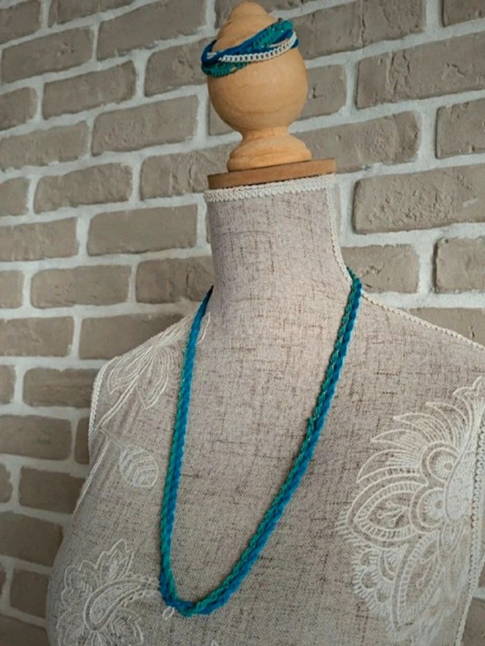 Ensemble collier et bracelet multirang camaïeu de bleus - photo numéro 2