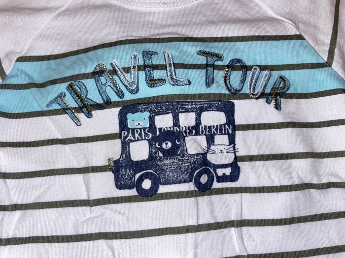 T-shirt manches longues Sucre d’orge blanc rayé à motif voyage taille 9 mois - photo numéro 3