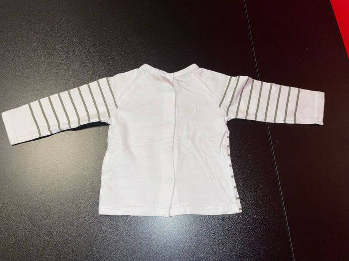 T-shirt manches longues Sucre d’orge blanc rayé à motif voyage taille 9 mois - photo numéro 2