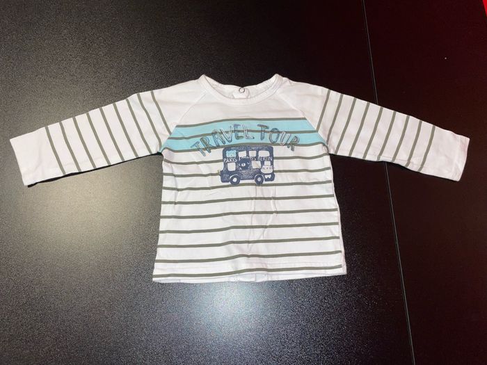 T-shirt manches longues Sucre d’orge blanc rayé à motif voyage taille 9 mois - photo numéro 1