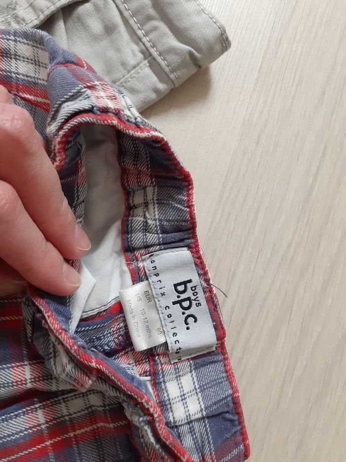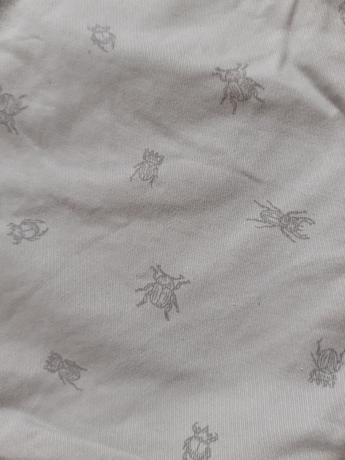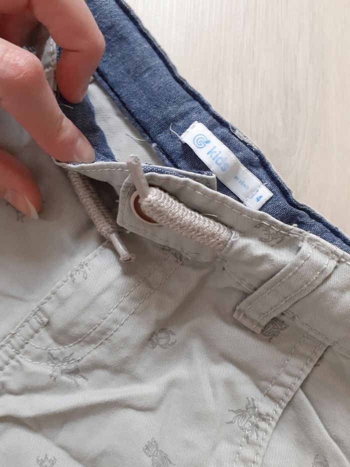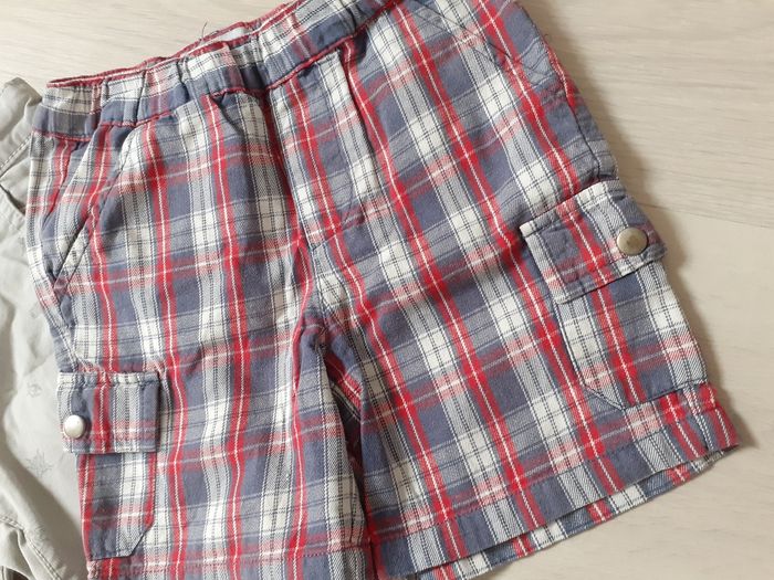 1 short en jean jamais porté motif scarabé et 1 en coton qui comporte un petit accro à l'arrière (la taille indiquée est éronnée, correspond à un 4 ans)