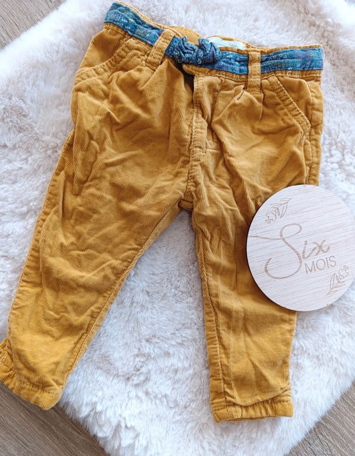 🌺 Marque : Mes petits cailloux 🌺 Taille : 6 mois 🌺 Jolie pantalon jaune moutarde avec fausse ceinture bleu #deborahcog_6moisfille