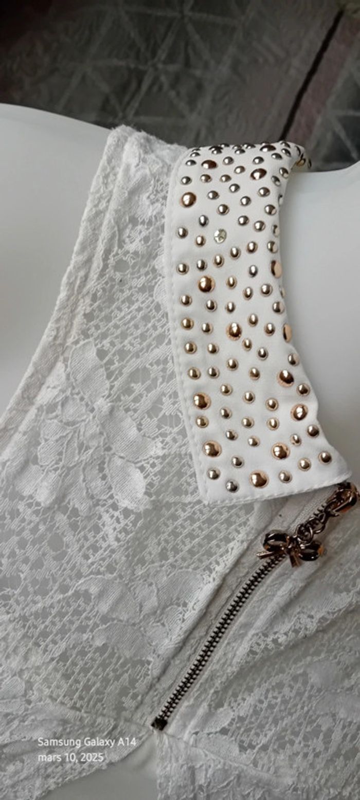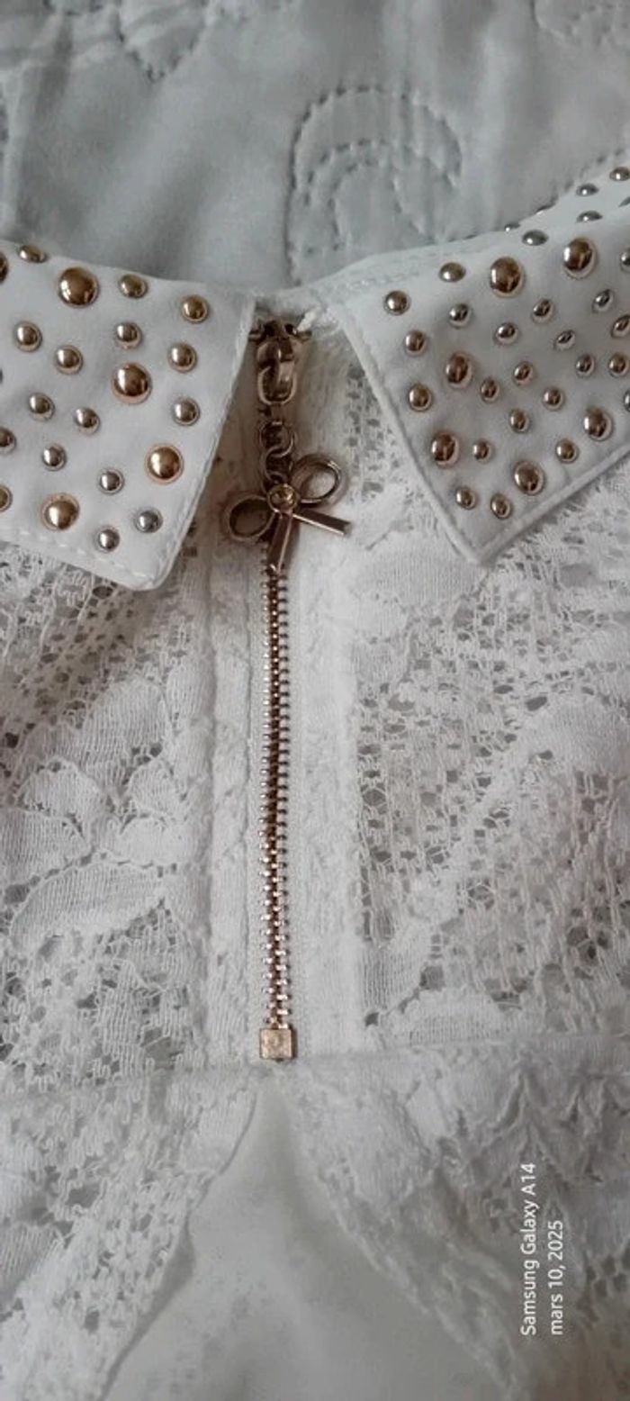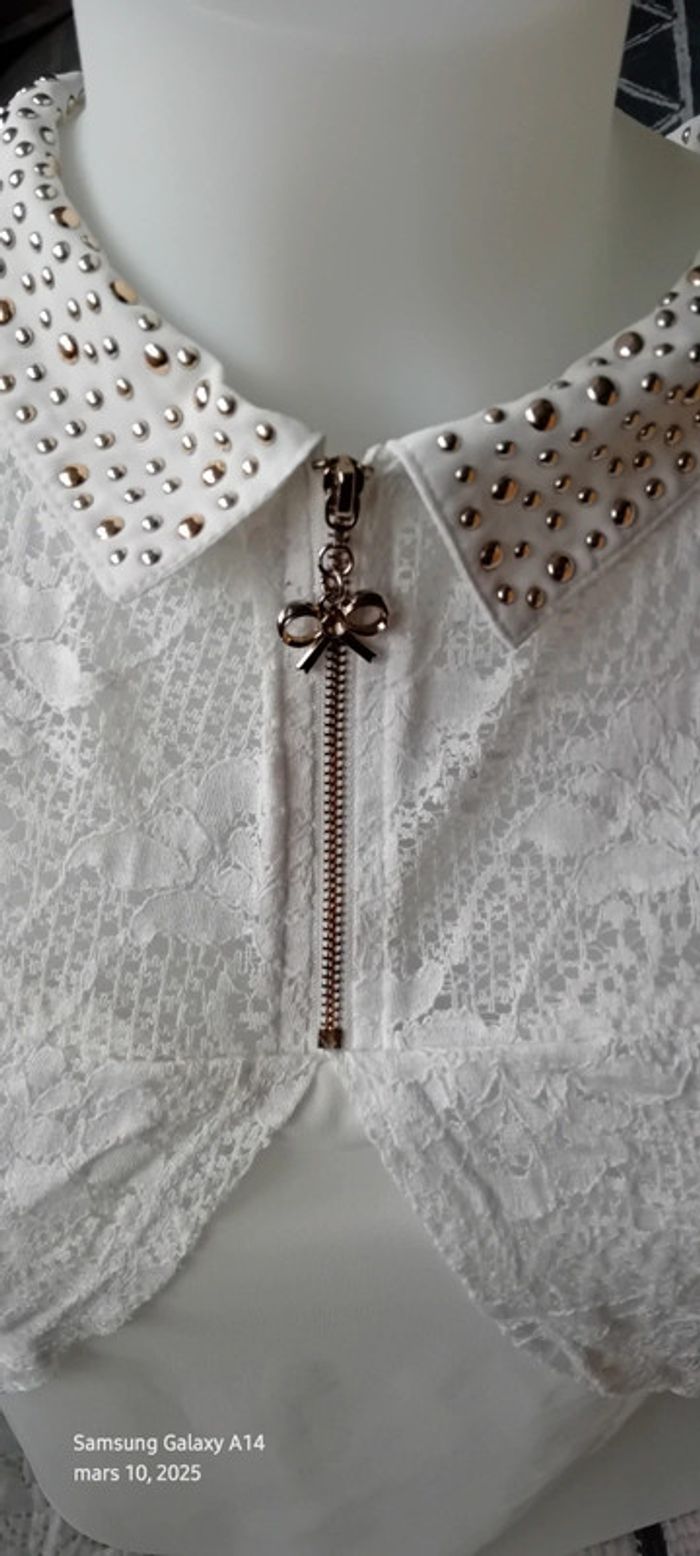 Tunique débardeur en voile dos dentelle col avec clous blanc femme Ditta italia - photo numéro 12