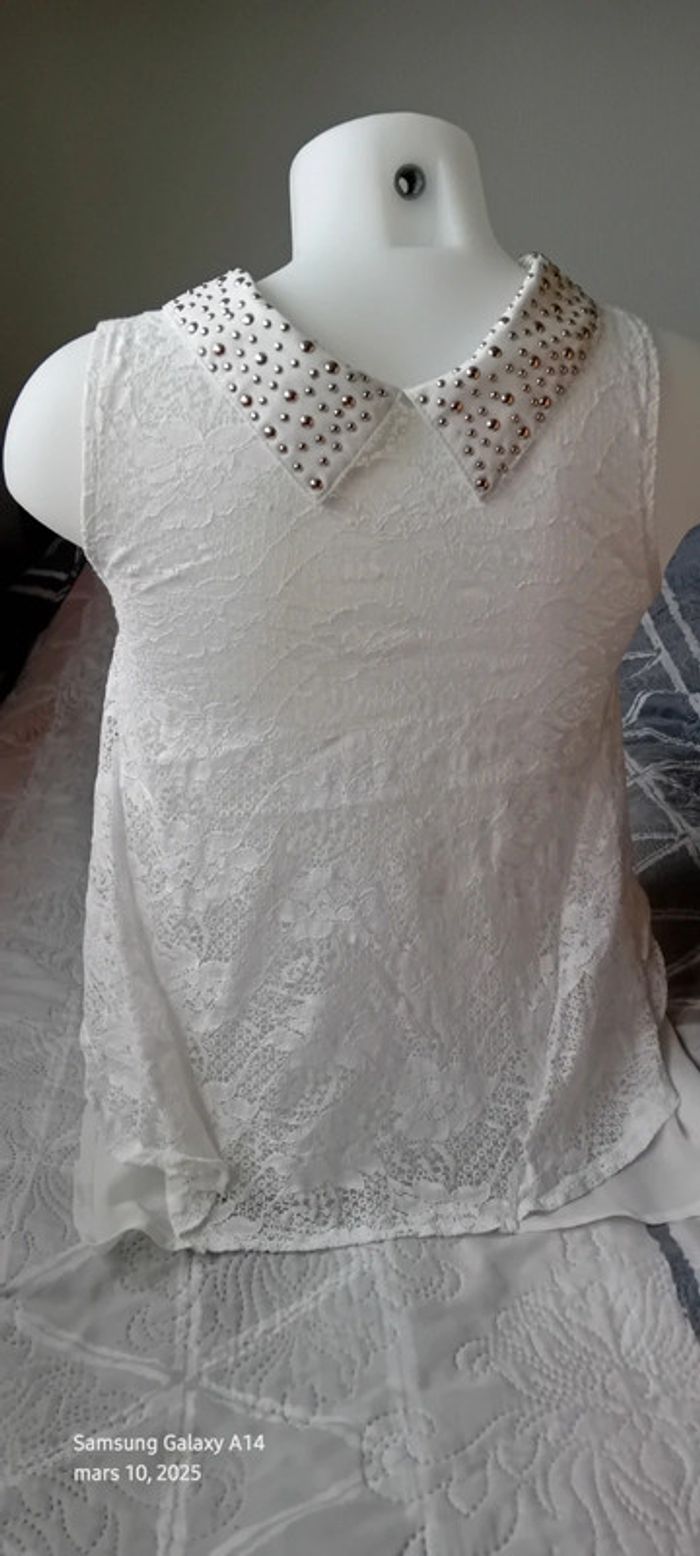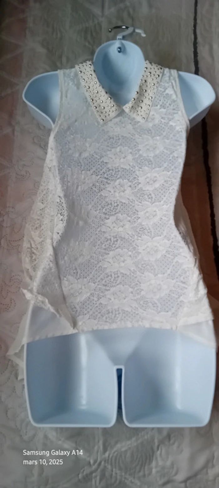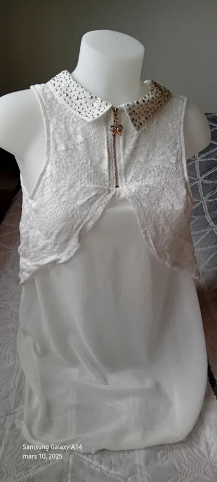 Tunique débardeur en voile dos dentelle col avec clous blanc femme Ditta italia - photo numéro 1