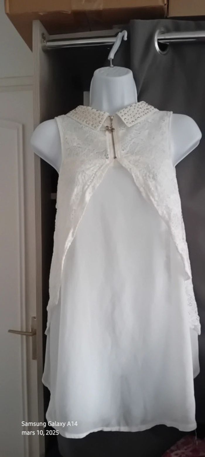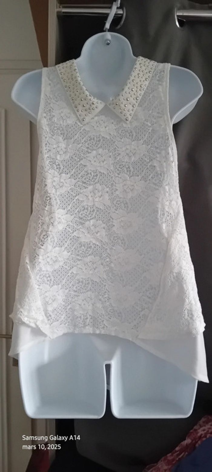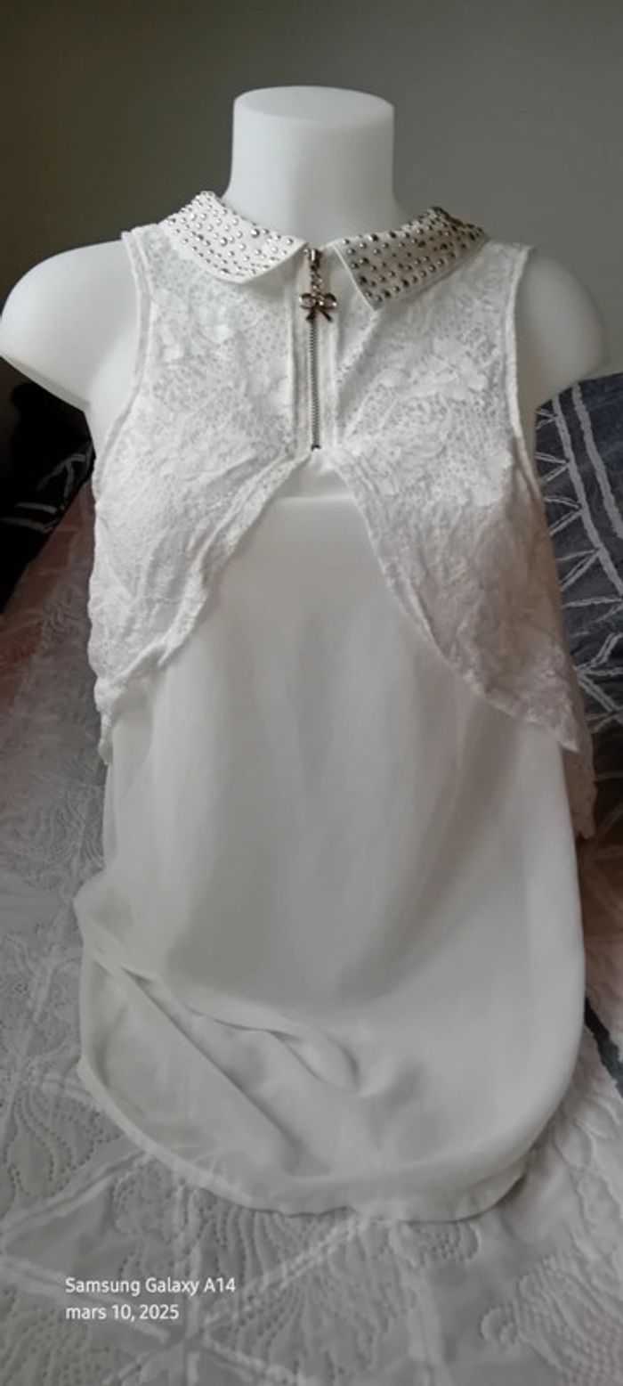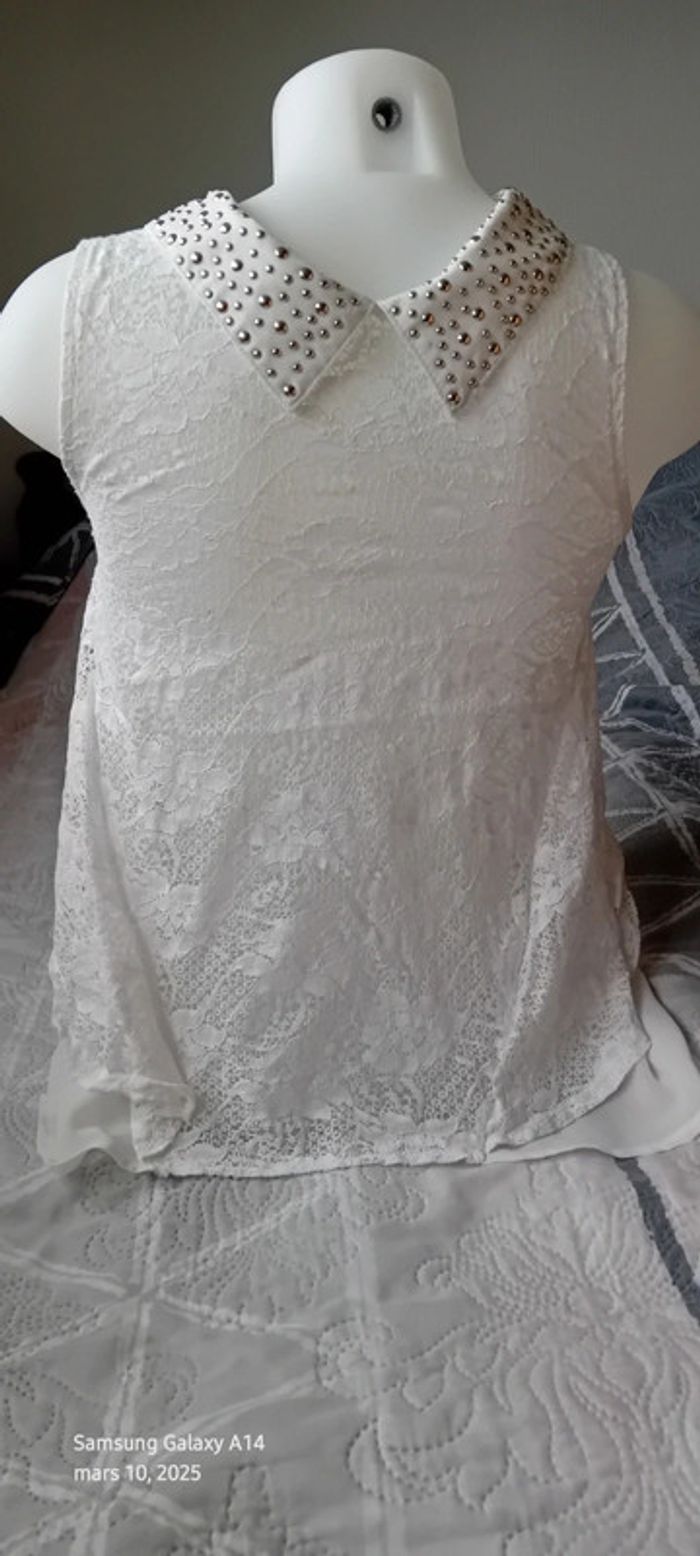 Tunique débardeur en voile dos dentelle col avec clous blanc femme Ditta italia - photo numéro 1