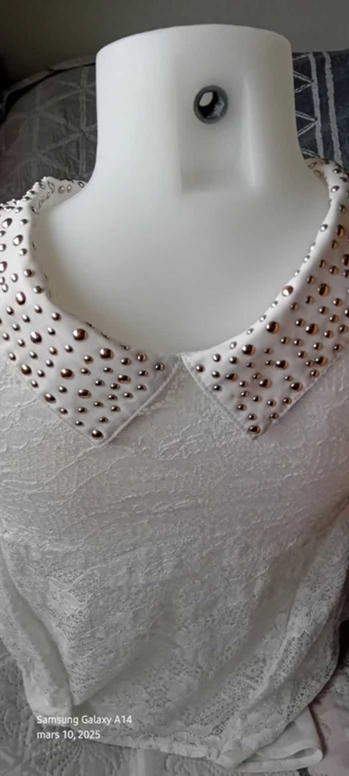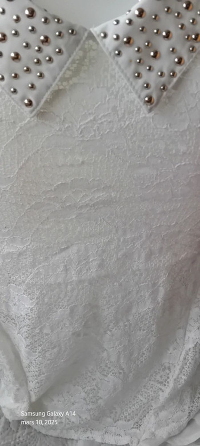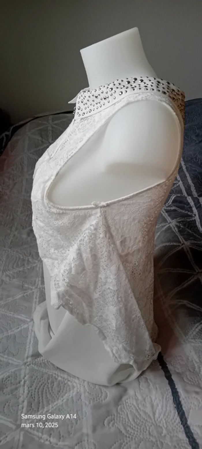 Tunique débardeur en voile dos dentelle col avec clous blanc femme Ditta italia - photo numéro 14