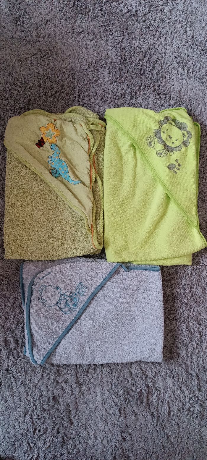 Lot de 3 capes de bain / sortie de bain 1 Carré blanc et 2 sans marque Très bon état #clairefvetementsautres N'hésitez pas à me demander des 📷 photos. 👧naissance => 5 ans 👦naissance => 24 mois Matériel puériculture, jouets d'éveil ... 📦Envoi rapide et soigné