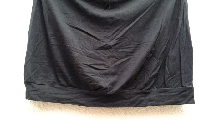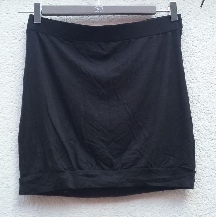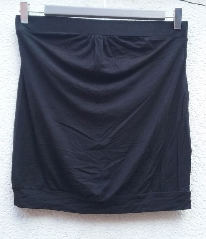 Jupe comprenant de l'élasthanne, taille élastiquée, petites fronces sur le devant, hauteur 40 cm, T38/40.