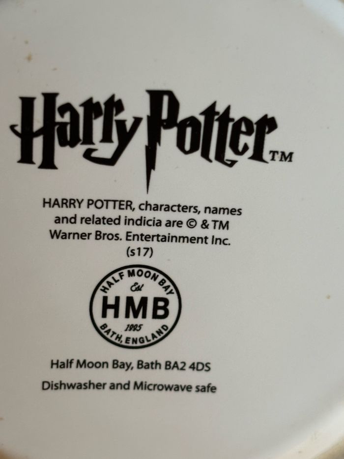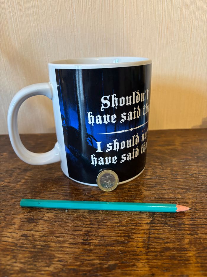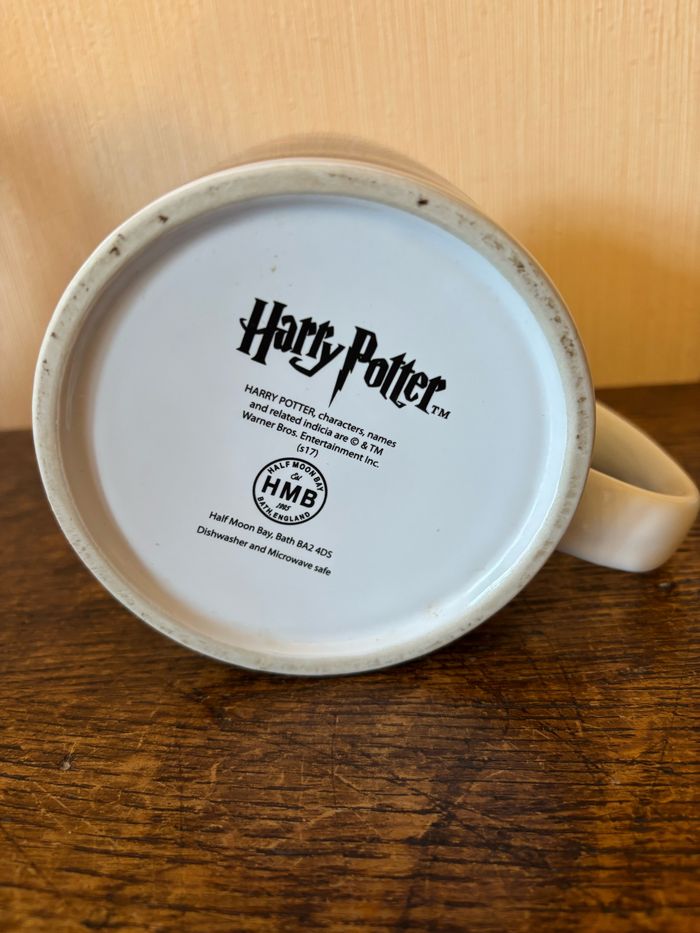 Vend tasse géante (mug) Harry Potter - Rubeus Hagrid Avec anse en céramique contenance approximative 700 ml, Marque Half Moon Bay Dimensions : 12,5 (h) x 11 (d) cm Poids 780 g Tasse sous licence officielle Harry Potter. principalement noire intérieur et anse blancs. Decor : d’un coté image du personnage Rubeus Hagrid, (le garde-chasse de Poudlard), vêtu de son manteau en fourrure sur un fond sombre bleuté. De l’autre côté, une citation emblématique de Hagrid est inscrite en caractères gothiques : “Shouldn’t have said that. I should not have said that.” (Traduction : “Je n’aurais pas dû dire ça. Je n’aurais vraiment pas dû dire ça.”), réplique célèbre du personnage dans les films. Sous la tasse, on trouve le logo Harry Potter™, ainsi que des mentions légales indiquant qu’il s’agit d’un produit officiel sous licence Warner Bros, fabriqué par Half Moon Bay. Tasse compatible avec le lave-vaisselle et le micro-ondes. Objet de collection rare à la vente. Idéal pour les fans de Harry Potter, en particulier ceux qui aiment le personnage de Hagrid. Cette tasse est en excellent état. Elle était dans une vitrine! Maison non-fumeur et sans animaux. Vendu 15 €.