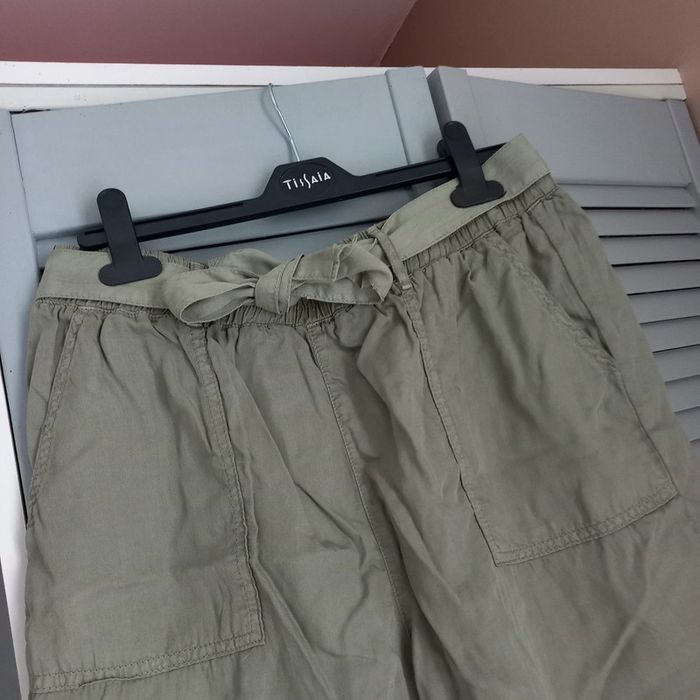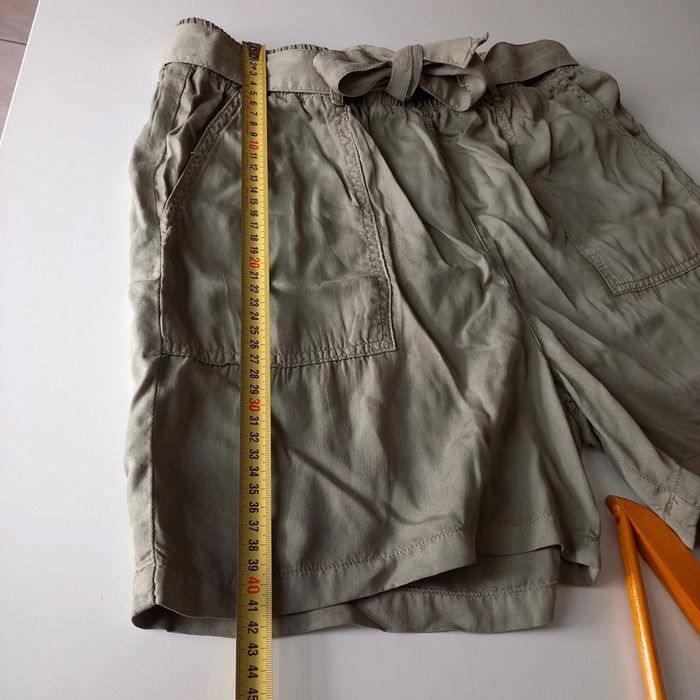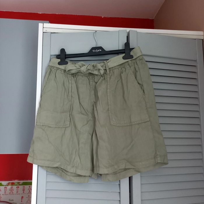 Short fluide kaki clair avec noeud a la taille Matière fluide et agréable Jamais porté mais sans étiquette ( étiquette antivol a couper encore présente) In extenso Taille 40