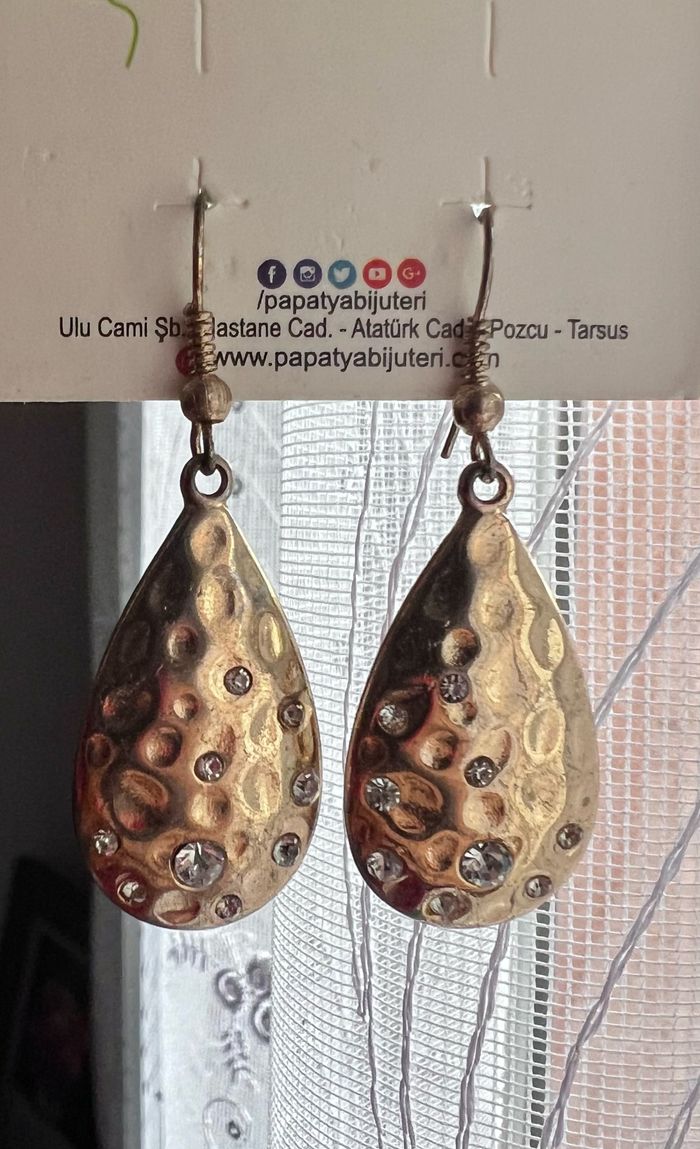 Boucles d'oreilles dorées et strass blancs En métal Quelques traces 📩Je réponds rapidement aux messages 📦Envoi rapide et soigné